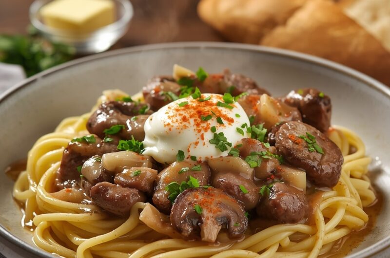 Beef Stroganoff with Mushrooms and Sour Cream is a timeless comfort dish that’s creamy, flavorful, and satisfying. With tender beef, earthy mushrooms, and a silky sauce, it’s perfect for family dinners, romantic evenings, or impressing guests. Once you master this classic, it will become a permanent part of your recipe collection.