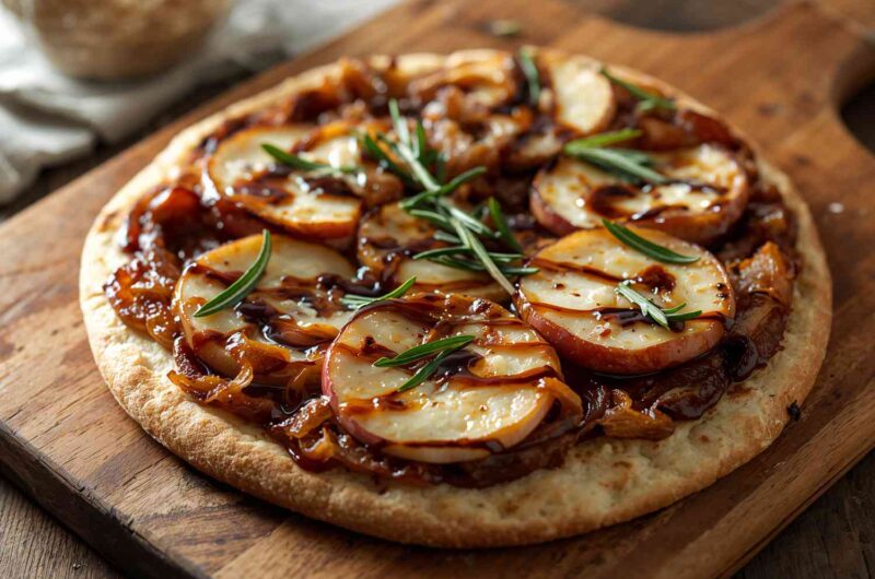 Caramelized Onion and Apple Flatbread Pizza is a deliciously sweet-and-savory twist on classic pizza that celebrates the flavors of fall. Thin, crisp flatbreads are topped with tender, golden caramelized onions, thinly sliced apples, and creamy cheese, then baked to perfection. The combination of sweet caramelized onions, slightly tart apples, and melted cheese creates a sophisticated flavor profile that’s both comforting and gourmet.