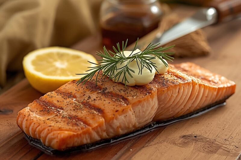 Cedar Plank Grilled Salmon with Dill Butter
