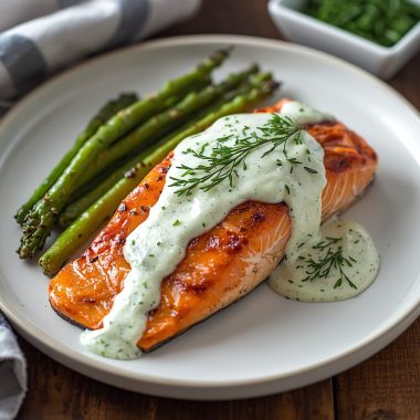 Cedar Plank Grilled Salmon with Dill Butter is a dish that combines rustic woodsy flavors with gourmet elegance. The cedar plank ensures the salmon stays moist while adding subtle smokiness, and the dill butter melts luxuriously over the top, enhancing every bite.