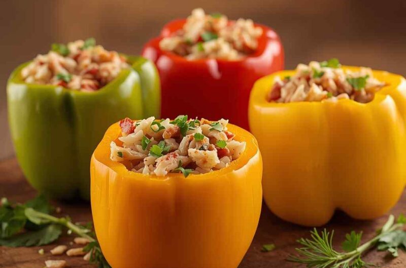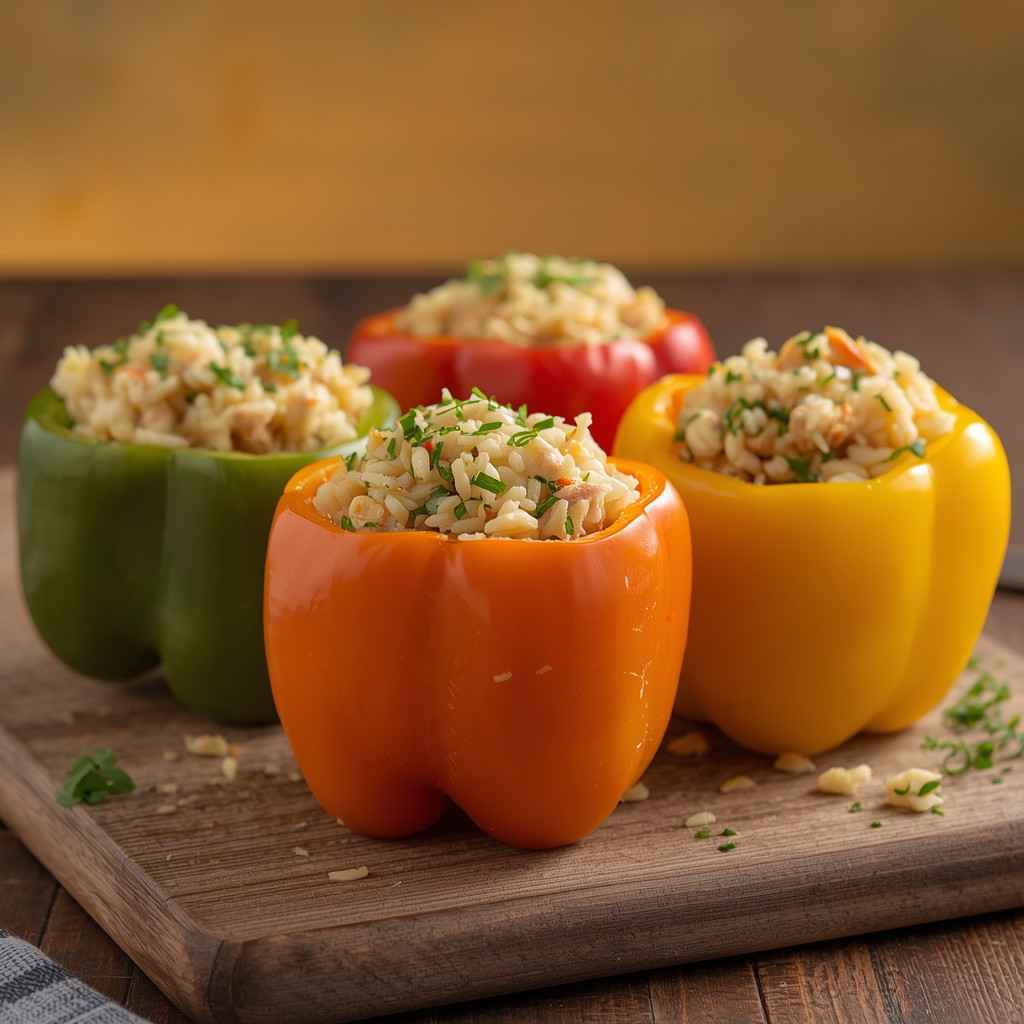 Chicken and Rice Stuffed Bell Peppers are a wholesome, colorful, and satisfying dish that brings comfort and nutrition together in one beautiful presentation. Each bell pepper is filled with a savory mixture of tender chicken, fluffy rice, aromatic herbs, vegetables, and cheese, then baked until perfectly soft and flavorful.