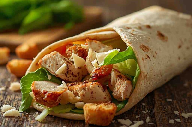 If you’re looking for a recipe that perfectly combines freshness, crunch, and creamy indulgence, these Chicken Caesar Wraps with Parmesan and Croutons are your answer. This handheld version of the classic Caesar salad takes everything you love — juicy grilled chicken, crisp romaine lettuce, crunchy croutons, rich Caesar dressing, and sharp Parmesan cheese — and rolls it all up in a soft, warm tortilla.