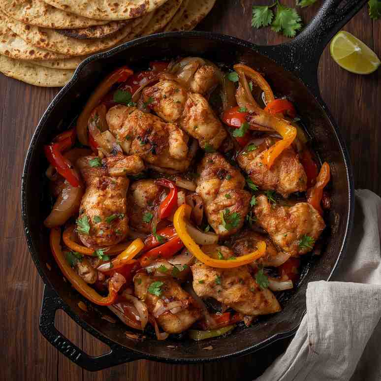 I absolutely love this recipe because it’s colorful, flavorful, and full of life. The combination of smoky chicken, slightly sweet peppers, and soft flour tortillas feels like a fiesta in every bite. The chicken is marinated in a zesty blend of lime juice, garlic, and spices — giving it that authentic fajita flavor that’s both tangy and savory.