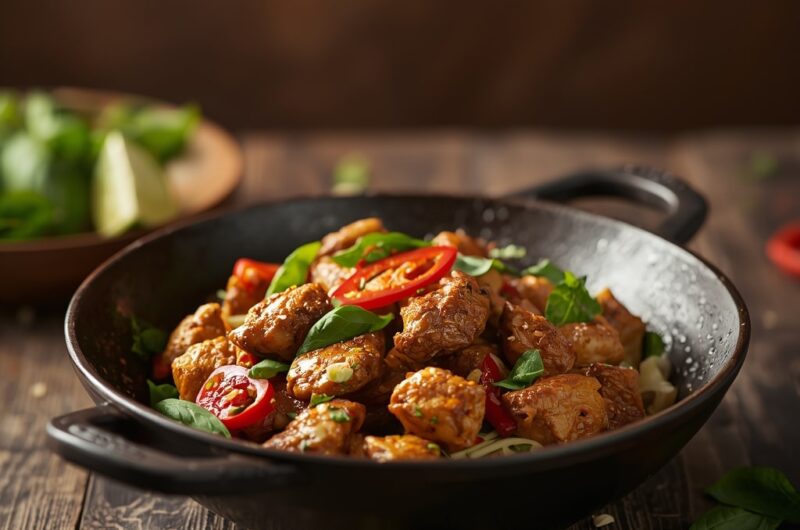 Chicken Pad Kra Pao (Thai Basil Chicken) is a quick, flavorful, and aromatic stir-fry that brings the essence of Thai street food into your kitchen. Bursting with spice, savory sauce, and the fragrance of fresh basil, it’s a dish that’s easy to prepare yet impressively bold in flavor. Perfect for a weeknight dinner or a casual gathering, this dish is a must-try for anyone craving authentic Thai flavors.