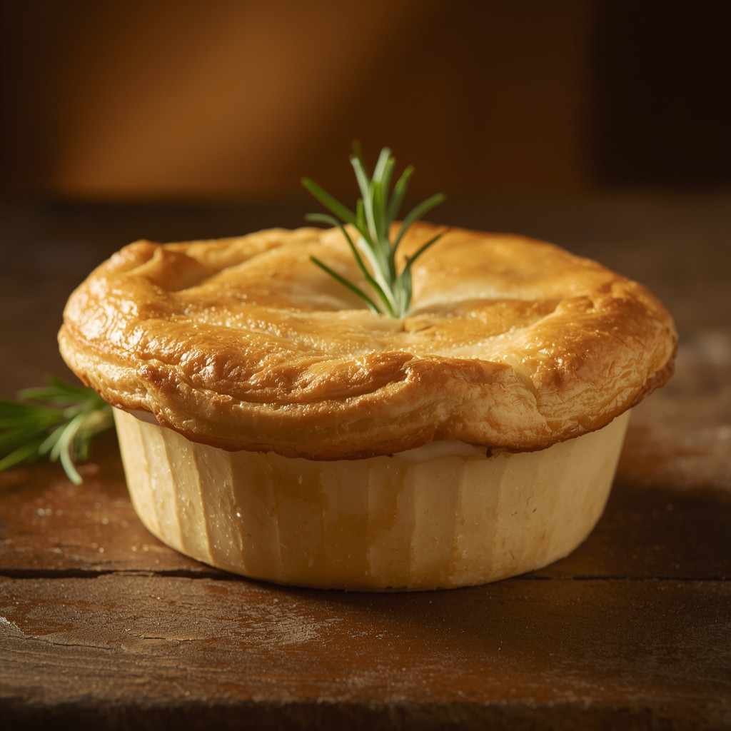 - Assemble Pie – Place filling in dish, cover with puff pastry, seal edges, and brush with egg wash.