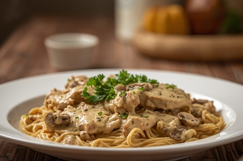 This recipe transforms simple ingredients into a classic, elegant casserole that’s perfect for family dinners, holiday gatherings, or even cozy weeknight meals. The creamy sauce coats every strand of pasta while the tender chicken and mushrooms add depth, making it a hearty and fulfilling dish. What truly makes it special is how it’s baked to perfection—creating a lightly golden, bubbly top that’s impossible to resist.