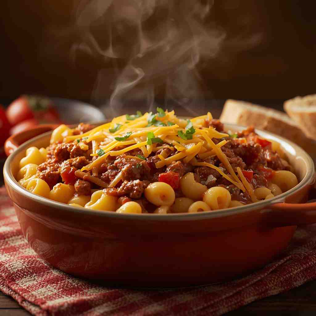 Chili Mac with Ground Beef and Cheese