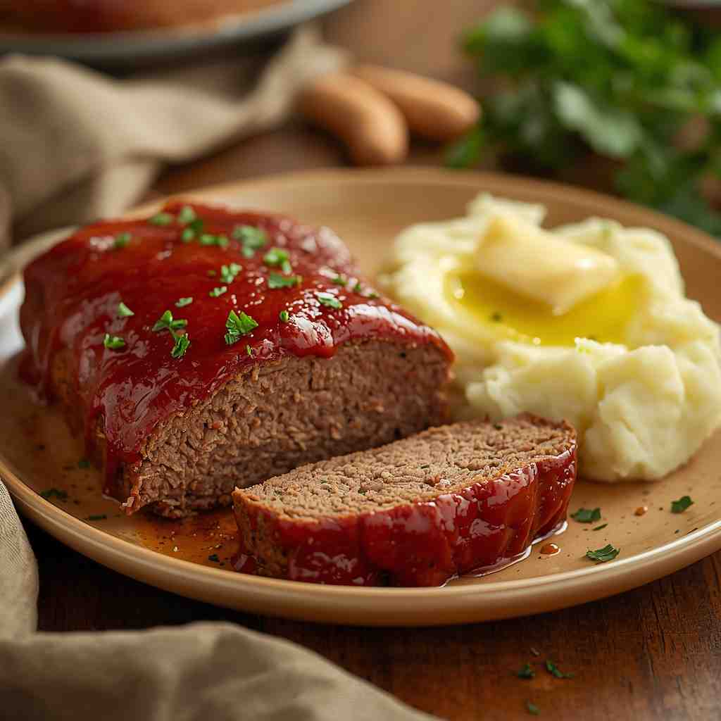 - Step 6: Serve : Slice the meatloaf into even portions. Serve alongside a generous scoop of mashed potatoes. Drizzle remaining glaze or pan juices over the meatloaf for extra flavor.