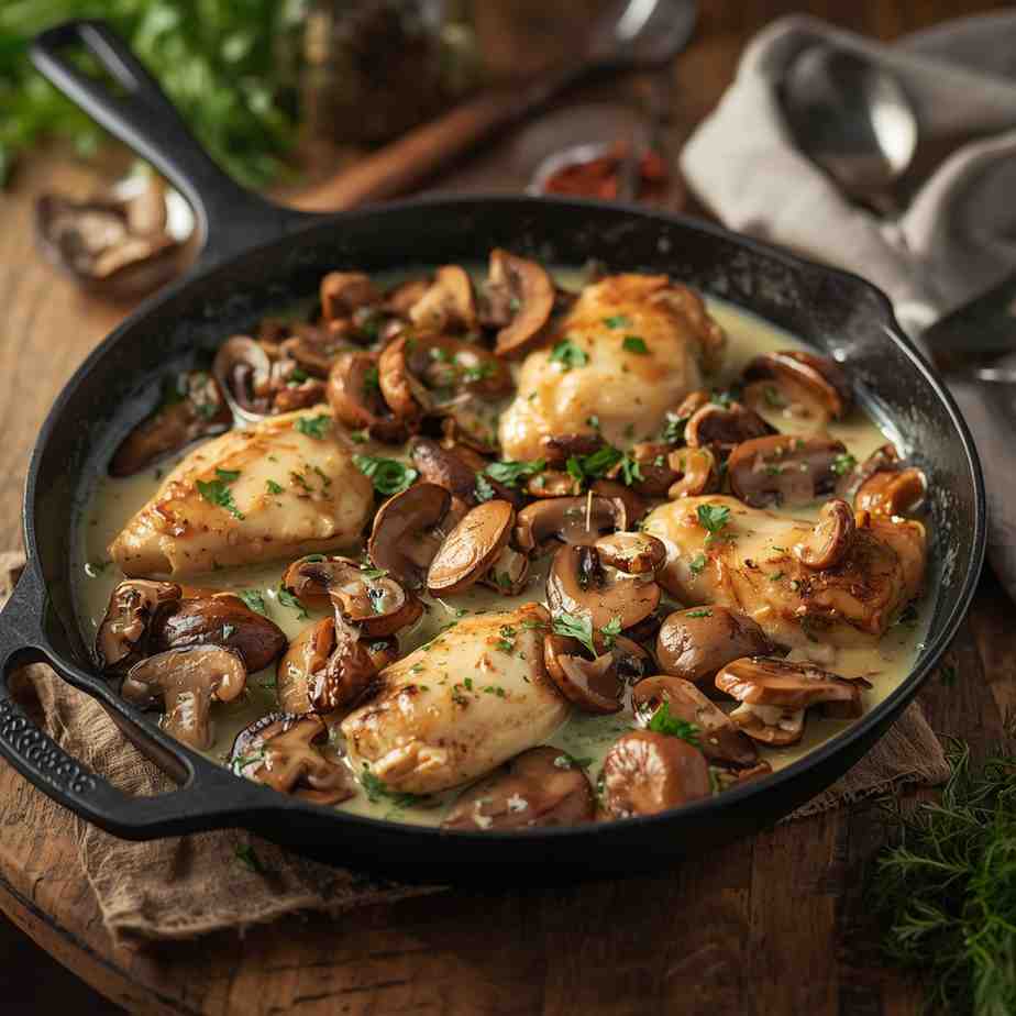 Creamy Chicken and Mushroom Skillet is the ultimate comfort food — hearty, savory, and full of rich flavors, all cooked in a single pan. Tender chicken breasts or thighs are seared to perfection and then simmered in a luscious mushroom cream sauce infused with garlic, onions, and herbs.