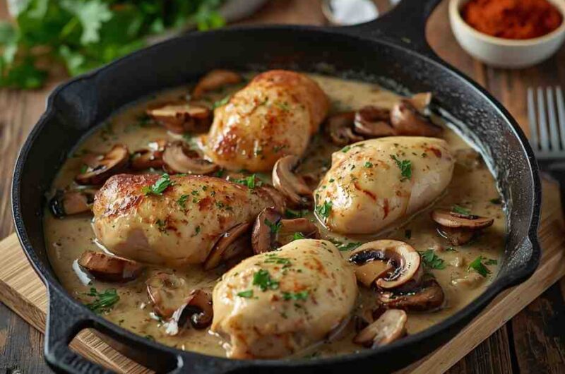 I love this recipe because it’s effortless yet indulgent. The chicken stays tender and juicy, while the mushroom sauce is rich, velvety, and full of flavor. Cooking everything in one skillet makes it not only quick but also incredibly easy to clean up.