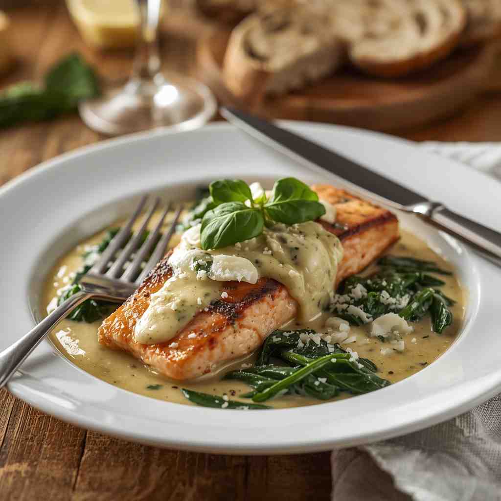 This recipe transforms ordinary salmon into a gourmet experience. The velvety sauce clings to every bite, balancing the natural richness of the fish with a subtle tang from the Parmesan and a burst of freshness from the spinach. It’s an easy one-pan wonder that feels luxurious enough for a date night or family dinner.