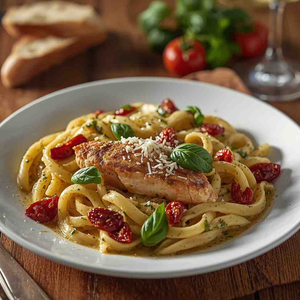 Creamy Pesto Chicken Pasta with Sun-Dried Tomatoes