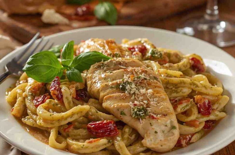 Creamy Pesto Chicken Pasta with Sun-Dried Tomatoes