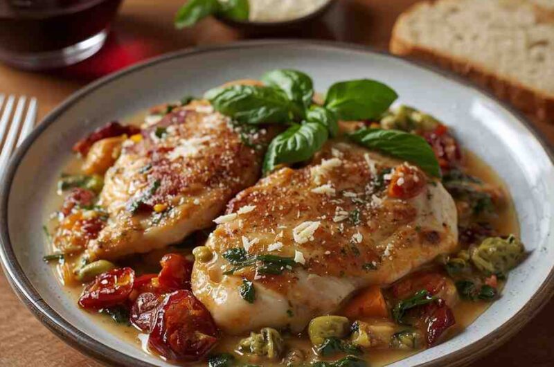 The velvety sauce, infused with Parmesan and herbs, clings beautifully to the tender chicken, while the sun-dried tomatoes add a burst of tangy sweetness that perfectly balances the creaminess. Whether served with pasta, mashed potatoes, or crusty bread, this dish transforms an ordinary dinner into something truly special.