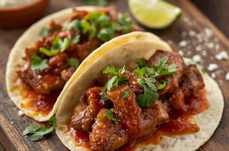 Crispy Pork Belly Tacos with Salsa Roja is the kind of dish that brings together rich flavors, bold textures, and vibrant Mexican-inspired aromas in every bite. The pork belly is slow-cooked until meltingly tender, then crisped to perfection so every piece has that irresistible crackling exterior and buttery inside. When piled onto warm tortillas with a bright, smoky salsa roja, fresh onions, cilantro, and a squeeze of lime, these tacos become a flavor-packed masterpiece.