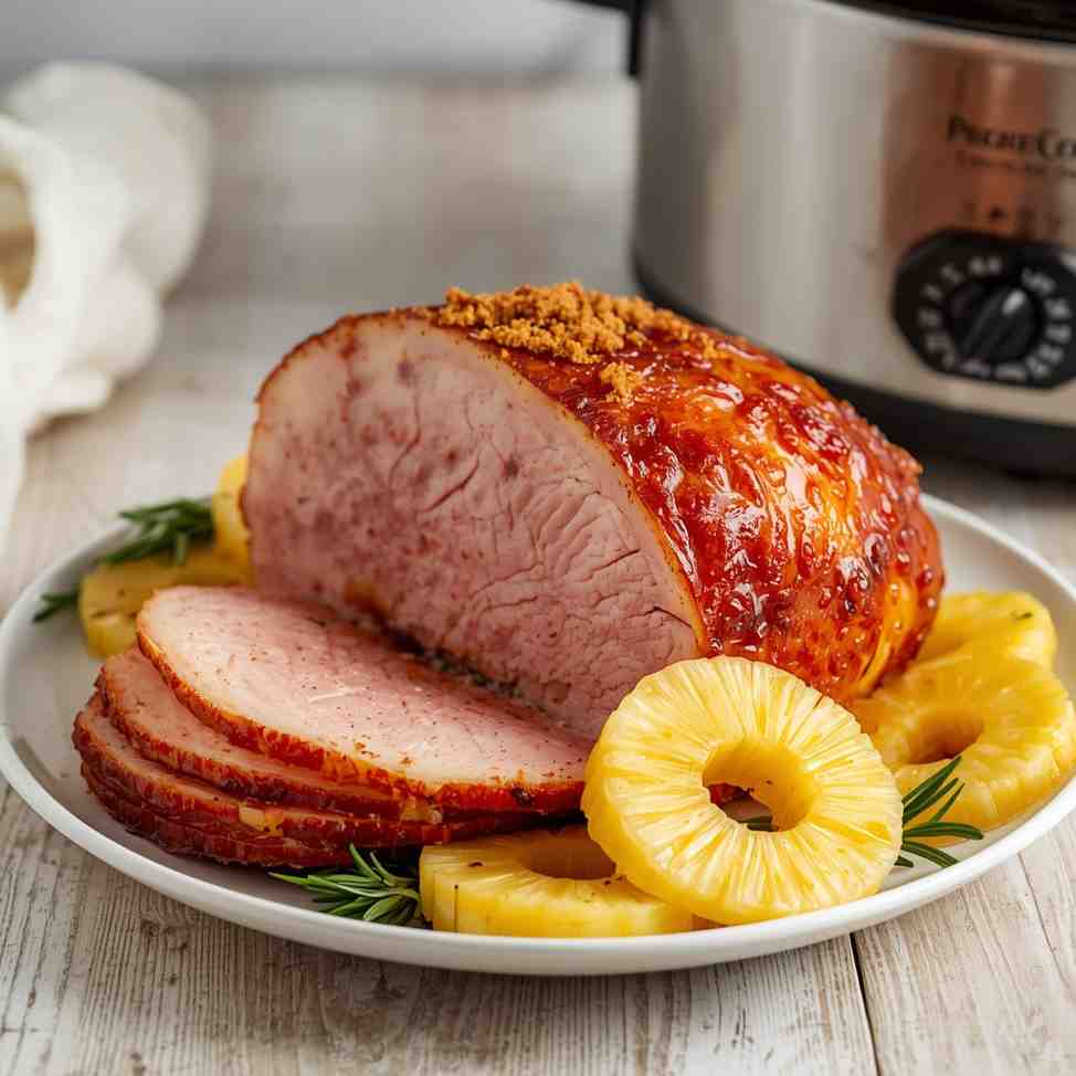 Crockpot Maple Glazed Ham with Pineapple