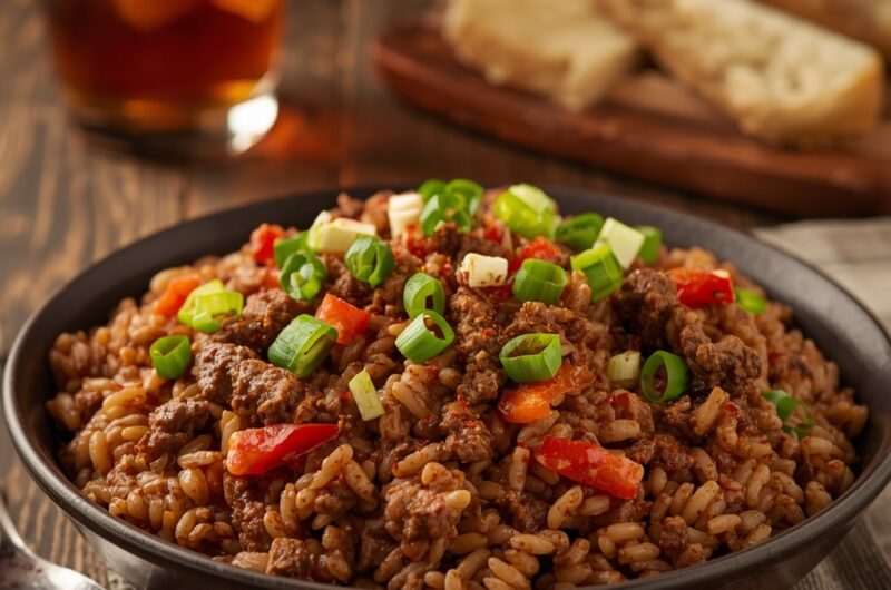 Dirty Rice is a beloved Cajun and Creole classic from Louisiana that gets its name from the “dirty” color the rice takes on from cooking with browned meat, liver (optional), and rich spices. Traditionally made with chicken livers for depth of flavor, this recipe uses ground beef for a more approachable, everyday version while still keeping those bold Cajun seasonings that make it irresistible.