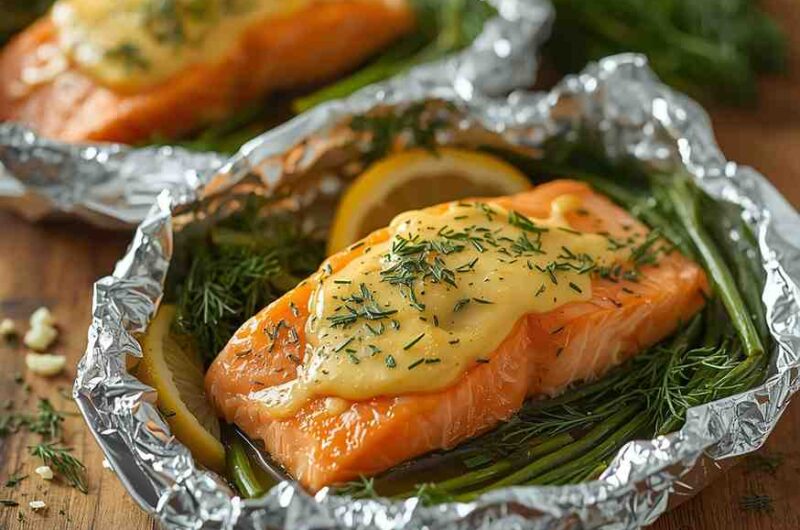 Garlic Butter Salmon Packets with Lemon and Dill is the ultimate combination of simplicity and gourmet flavor. This dish features tender salmon fillets infused with the rich aroma of garlic butter, the brightness of fresh lemon, and the herbaceous touch of dill—all sealed together in foil packets that lock in flavor and moisture. As the salmon steams and bakes inside the foil, it absorbs every bit of buttery, garlicky goodness, resulting in a melt-in-your-mouth experience that feels both fresh and indulgent.