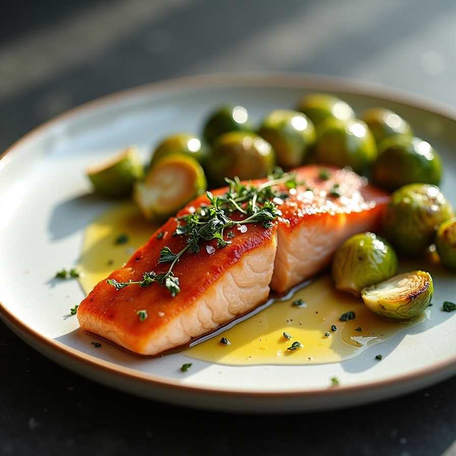 Garlic Butter Salmon with Roasted Brussels Sprouts is a wholesome and elegant meal that brings together rich, buttery flavors with fresh, roasted vegetables. Tender salmon fillets are pan-seared or oven-baked in a fragrant garlic butter sauce, while Brussels sprouts are roasted until caramelized and crisp on the edges. This dish is inspired by modern home cooking that values simplicity, nutrition, and bold flavor. Perfect for weeknight dinners or special occasions, it delivers a satisfying balance of protein, healthy fats, and vegetables in one beautifully composed plate.