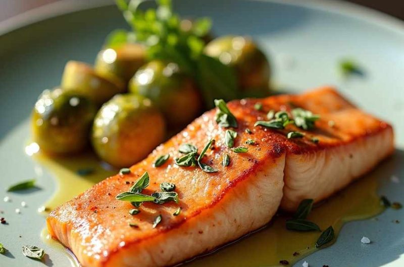 Garlic Butter Salmon with Roasted Brussels Sprouts is a wholesome and elegant meal that brings together rich, buttery flavors with fresh, roasted vegetables. Tender salmon fillets are pan-seared or oven-baked in a fragrant garlic butter sauce, while Brussels sprouts are roasted until caramelized and crisp on the edges. This dish is inspired by modern home cooking that values simplicity, nutrition, and bold flavor. Perfect for weeknight dinners or special occasions, it delivers a satisfying balance of protein, healthy fats, and vegetables in one beautifully composed plate.
