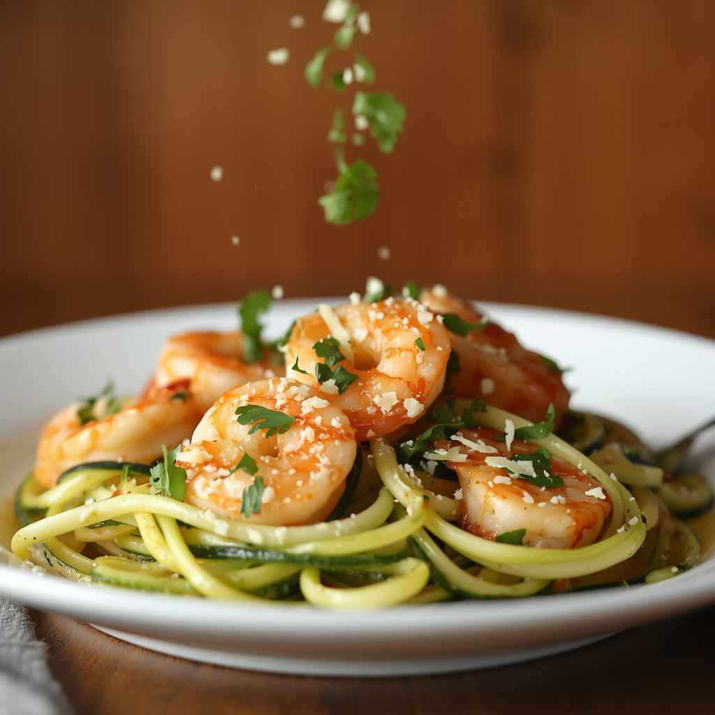 • Step 5: Combine and Season : Return shrimp to the skillet, drizzle with lemon juice, and toss with zoodles to coat in garlic butter.