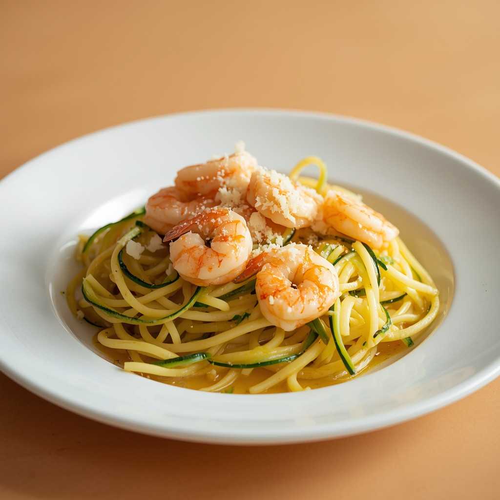 - Step 5: Combine Everything : Return the shrimp to the skillet and toss with the zoodles and sauce. Sprinkle remaining Parmesan and chopped parsley.