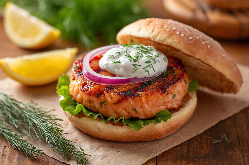 If you’re looking for a wholesome, flavorful, and refreshing alternative to the classic beef burger, then Grilled Salmon Burgers with Dill Sauce will absolutely win your heart. These burgers are juicy, tender, and infused with fresh herbs and seasonings, then grilled to perfection for a light smokiness. The star of the dish is the creamy dill sauce—a cool, tangy complement that perfectly balances the rich salmon patties.