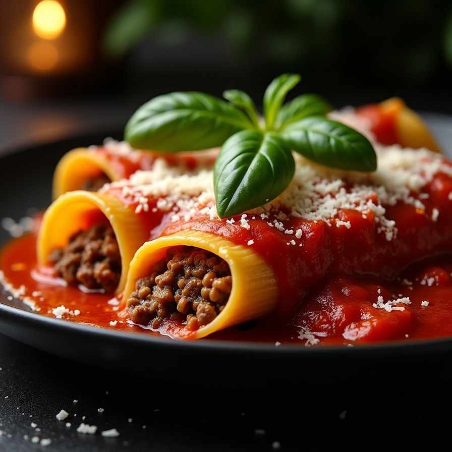 Ground Beef and Cheese Manicotti with Marinara