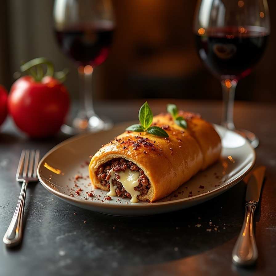 Ground Beef and Cheese Stromboli is a savory, comforting, and satisfying dish that combines seasoned ground beef with gooey melted cheese, all wrapped in soft, golden-brown pizza dough.