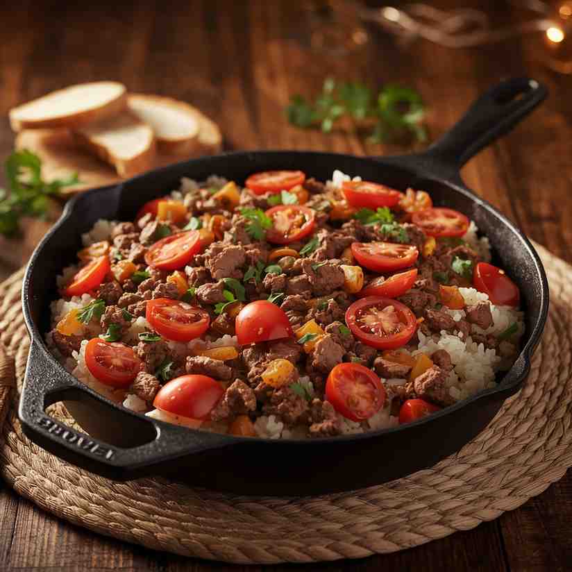 Ground Beef and Rice Skillet with Tomatoes