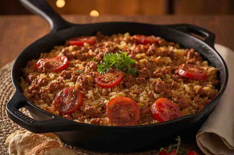 This Ground Beef and Rice Skillet with Tomatoes is the perfect example of how simple ingredients can create something truly comforting and delicious. Every spoonful delivers savory beef, tender rice, juicy tomatoes, and perfectly balanced spices.