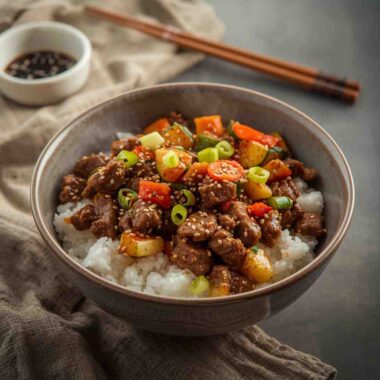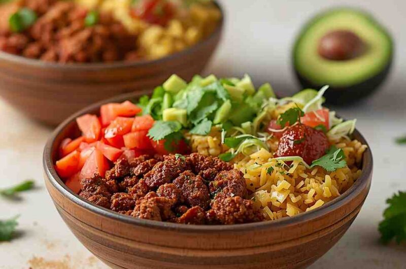 Ground Beef Burrito Bowls with Cilantro Lime Rice are a fresh, flavorful, and satisfying meal that brings the essence of a Mexican burrito to your bowl. With perfectly seasoned beef, fragrant lime rice, and colorful toppings, each bite offers a delightful mix of flavors and textures. It’s an easy, versatile, and healthy recipe that fits any occasion—whether it’s a family dinner, meal prep for the week, or a casual gathering. Once you try this wholesome dish, it will become a regular on your menu, offering both comfort and freshness in every bowl.