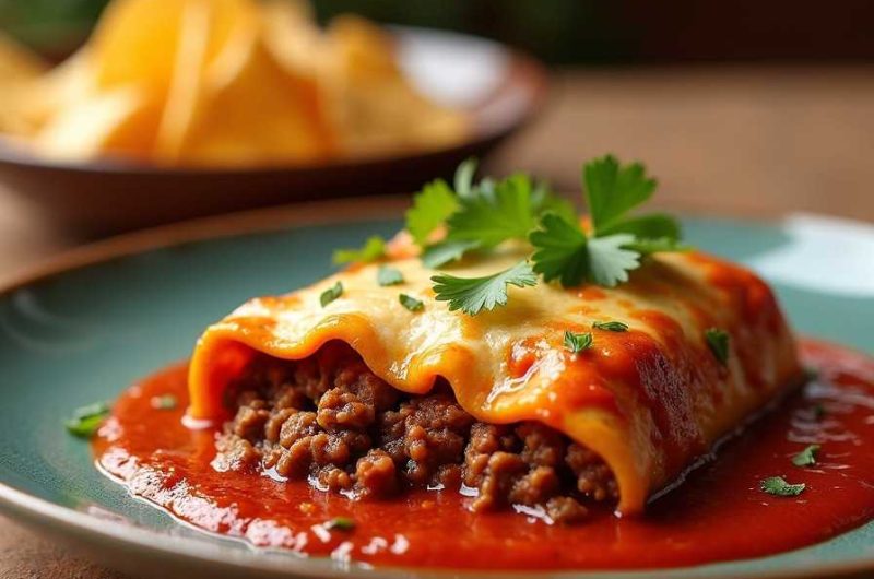 I love this recipe because it delivers big flavor with minimal effort. It has all the taste of homemade enchiladas without the time-consuming rolling process. The combination of seasoned beef, tangy red sauce, and gooey cheese is pure comfort food, and it is always a hit with both kids and adults.