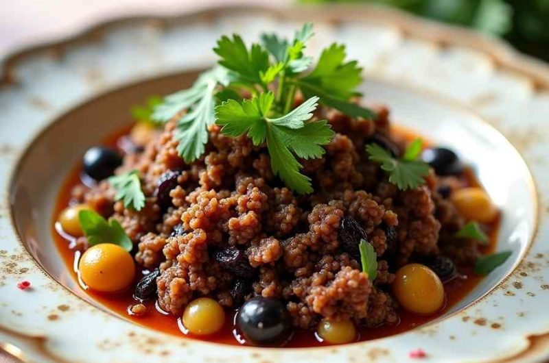 I love this recipe because it transforms simple ingredients—ground beef, tomatoes, onions, and a few pantry staples—into a dish bursting with flavor. The sweetness of raisins complements the saltiness of olives, and the spices tie everything together into a comforting, satisfying meal.