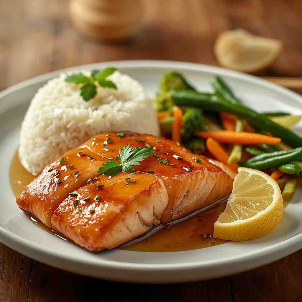 Honey Garlic Salmon with Jasmine Rice and Steamed Vegetables is a wholesome, flavorful, and quick-to-make meal perfect for weeknight dinners or special occasions. Tender, flaky salmon fillets are glazed with a sweet and savory honey garlic sauce that caramelizes beautifully in the pan.