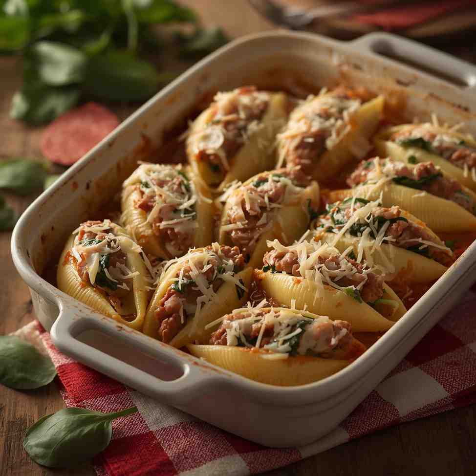 Italian Sausage and Spinach Stuffed Shells is a rich, comforting, and versatile dish that delivers incredible flavor with simple ingredients. Creamy ricotta, seasoned sausage, and tender spinach combine beautifully inside jumbo pasta shells, all baked under a blanket of marinara and melted cheese. Whether you’re cooking for a family dinner, entertaining guests, or prepping meals for the week, this recipe offers reliability and delicious results every time. Enjoy the warmth and satisfaction of a homemade Italian-inspired classic in every bite.