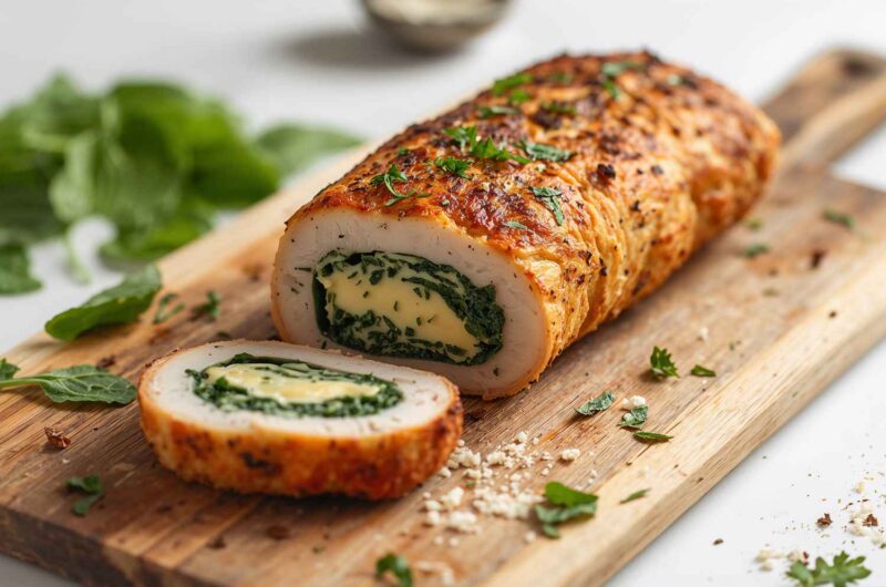 Italian Stuffed Pork Loin with Spinach and Cheese is a stunning, flavorful centerpiece for any meal. Juicy pork, creamy cheese, and vibrant spinach create a perfect harmony of taste and texture. Elegant enough for holidays or dinner parties, yet easy enough for weeknight dinners, this dish is both impressive and comforting. Every slice reveals a spiral of cheesy, herby goodness, making it a must-try for pork lovers and anyone seeking a delicious, hearty, and visually stunning main course.