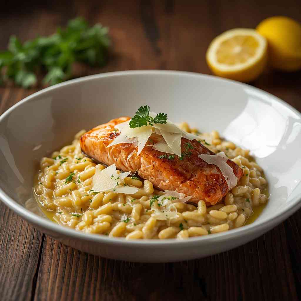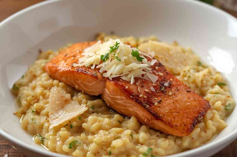 Lemon Garlic Salmon Risotto with Parmesan Cheese