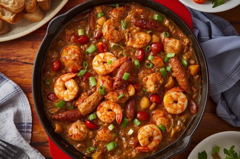 Jambalaya is one of Louisiana’s most celebrated dishes — a vibrant, one-pot wonder that’s brimming with bold Cajun-Creole flavors. This version combines juicy shrimp, tender chicken, and smoky sausage with vegetables, rice, and spices, creating a hearty and satisfying meal that’s perfect for family dinners, gatherings, or any time you crave a taste of the South.