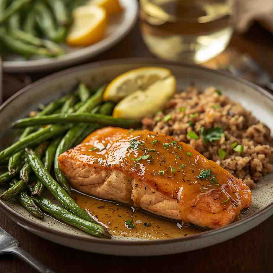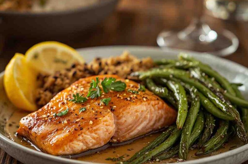Maple Mustard Baked Salmon with Roasted Green Beans is a flavorful, nourishing, and delightfully simple recipe that delivers gourmet-level taste with minimal effort. The harmonious blend of sweet maple syrup, tangy mustard, and tender salmon creates a dish that is both comforting and elegant. Paired with crisp roasted green beans, it’s a balanced and beautiful meal perfect for any night of the week. Once you try it, it’s sure to become a regular favorite in your kitchen.