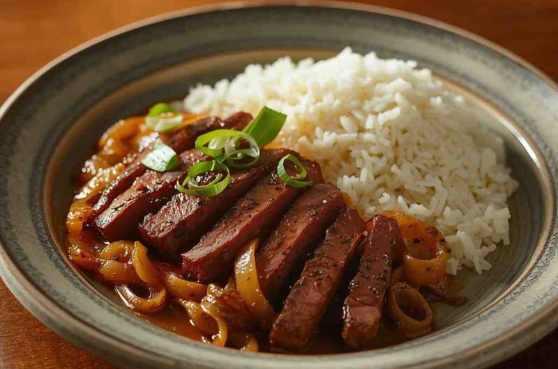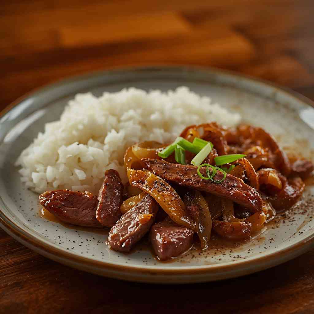 Pepper Steak with Onions and Rice is a classic stir-fry dish that brings the bold flavors of tender beef, sweet bell peppers, and onions together in a savory sauce, served over a bed of fluffy rice. This dish is quick to prepare, comforting, and packed with flavor.