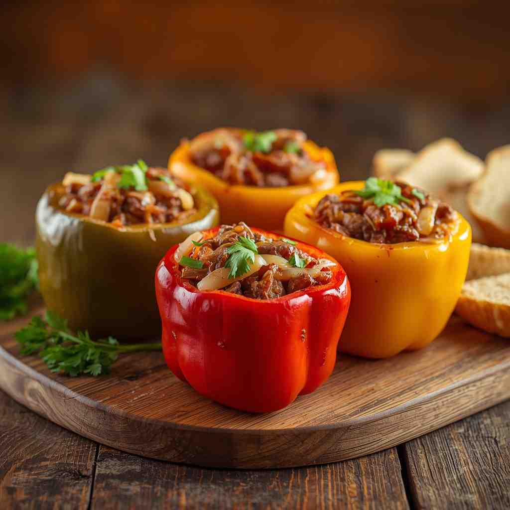 - Step 1: Prepare the Peppers : Preheat your oven to 400°F (200°C). Slice the bell peppers in half lengthwise, removing seeds and membranes. Place them cut-side up on a baking dish. Drizzle lightly with olive oil and season with a pinch of salt. Roast in the oven for 10–12 minutes, just until slightly tender but still firm enough to hold their shape. Remove and set aside.