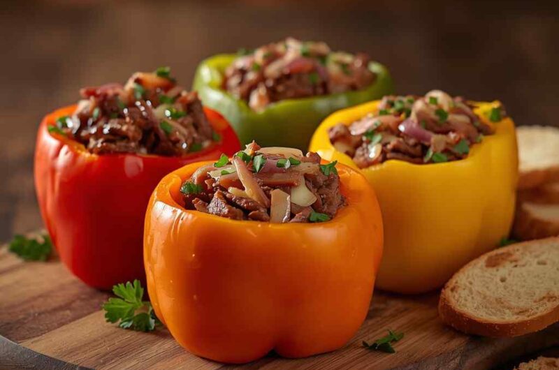 Few dishes bridge the gap between hearty comfort food and healthy eating quite like Philly Cheesesteak Stuffed Peppers. Inspired by the iconic Philadelphia cheesesteak sandwich, this recipe replaces the bread with vibrant bell peppers for a lighter, gluten-free twist. Each pepper half is stuffed with tender strips of steak, caramelized onions, sautéed mushrooms, and melted provolone cheese — all the signature flavors of the classic cheesesteak, but without the carbs.