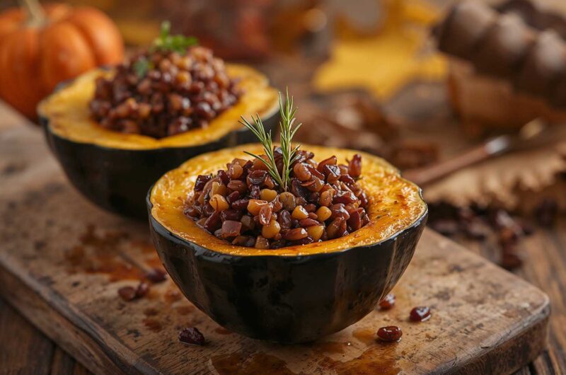 Roasted Acorn Squash Stuffed with Wild Rice is a vibrant, wholesome, and visually stunning dish perfect for fall and winter gatherings. Tender roasted acorn squash halves are filled with a hearty mixture of wild rice, sautéed vegetables, herbs, and nuts, creating a balance of flavors, textures, and nutrients. The naturally sweet and nutty flavor of acorn squash complements the earthy wild rice perfectly, while aromatic herbs and optional cheese or dried fruits add depth and complexity.