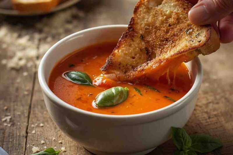Roasted Tomato Basil Soup with Grilled Cheese is the ultimate comfort food combination — creamy, savory, and aromatic tomato soup paired with a perfectly crisp, melty grilled cheese sandwich. Roasting the tomatoes intensifies their natural sweetness and deepens the flavor of the soup, while fresh basil adds a fragrant, herbal note that complements the richness of the tomatoes.