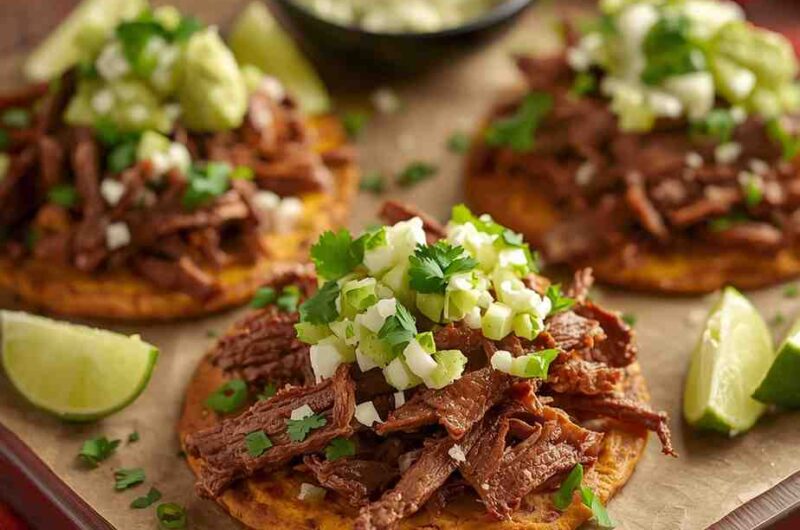 Shredded Beef Tostadas with Salsa Verde are a perfect blend of comfort and freshness — crispy, juicy, tangy, and deeply satisfying. Whether you’re hosting friends or craving a weeknight fiesta, this dish brings authentic Mexican flavor to your table with minimal effort. With its customizable toppings, make-ahead convenience, and irresistible taste, it’s a recipe you’ll return to again and again.