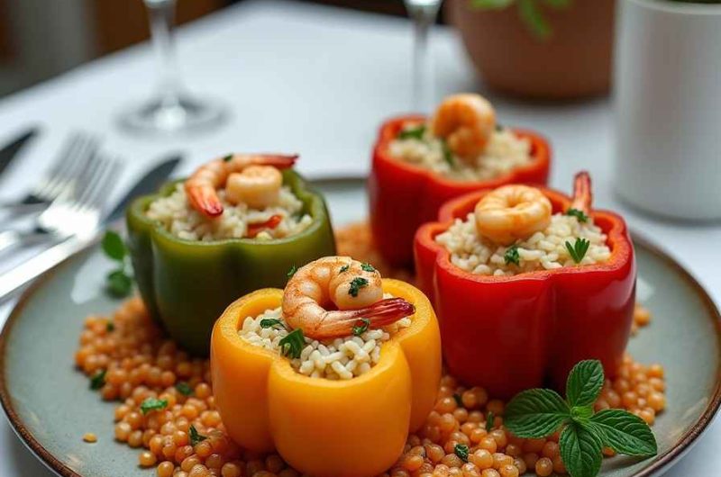 Shrimp and Rice Stuffed Bell Peppers are a vibrant, satisfying dish that beautifully combines tender shrimp, fluffy seasoned rice, and sweet bell peppers baked to perfection. This recipe brings together fresh seafood flavors with comforting rice and aromatic spices, all tucked inside colorful peppers that become soft and slightly sweet as they roast. The result is a balanced, wholesome meal that looks as good as it tastes.