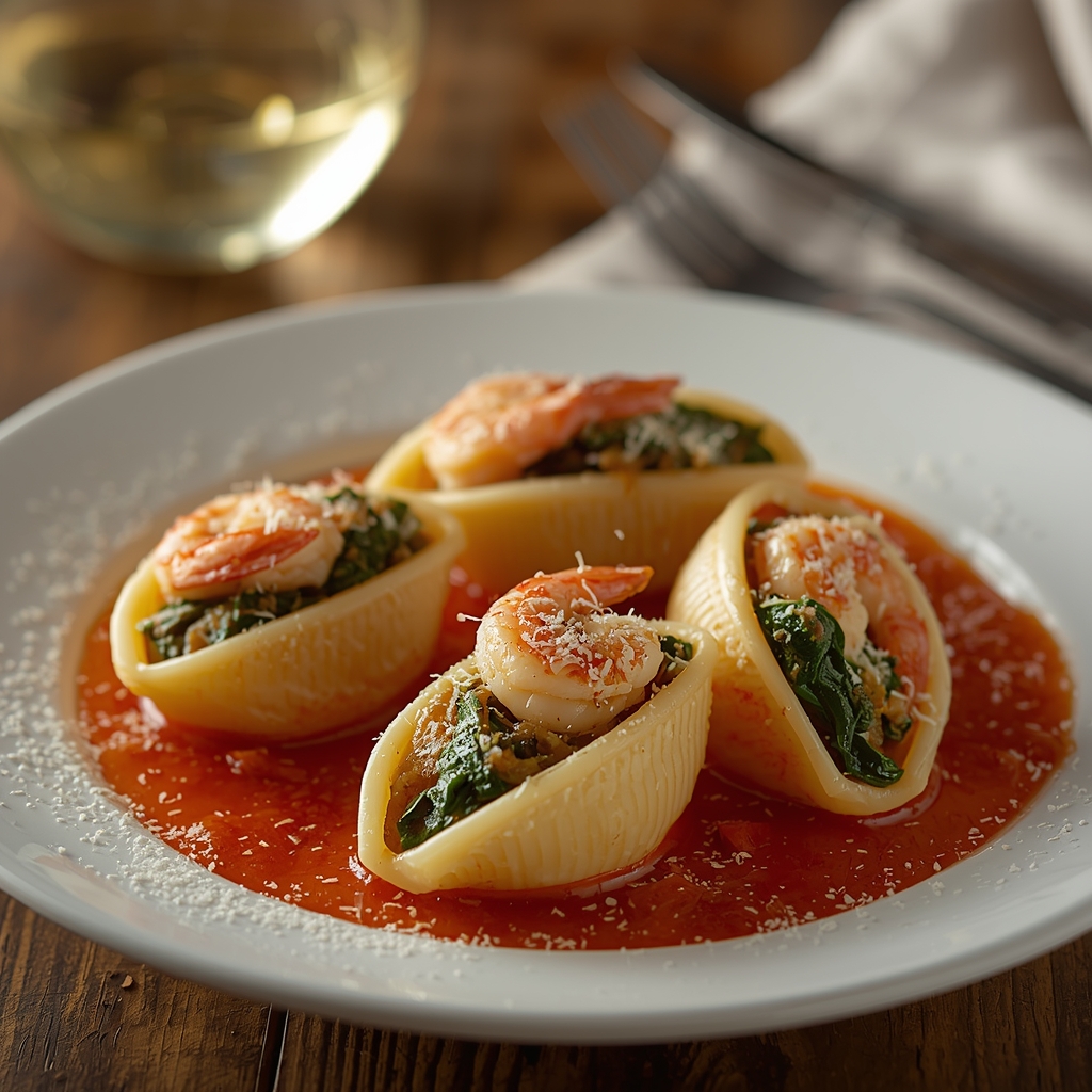 Shrimp and Spinach Stuffed Pasta Shells