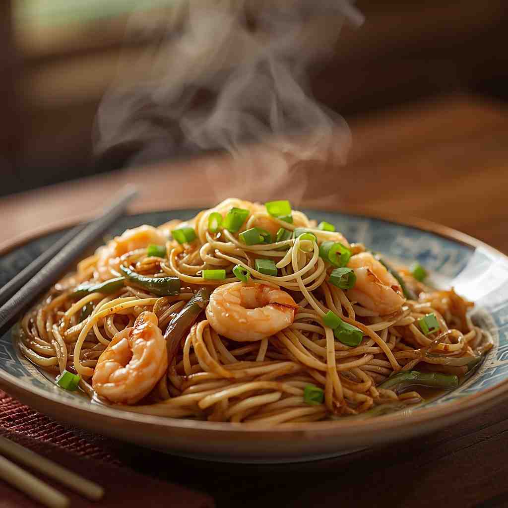 • Step 5: Combine Noodles, Shrimp, and Sauce : Add cooked noodles and shrimp back to the wok. Pour in the prepared sauce. Toss everything together over medium-high heat for 2-3 minutes until heated through and evenly coated with sauce.