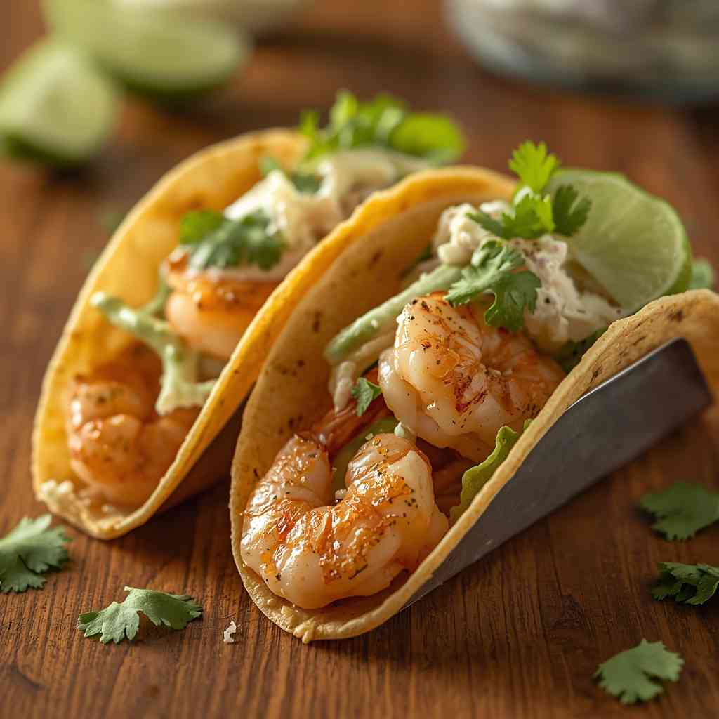 - Step 5: Assemble the Tacos : Place a spoonful of slaw on each tortilla. Add shrimp (3–4 per taco). Top with avocado slices, extra cilantro, or a drizzle of sauce. Squeeze fresh lime over the top.